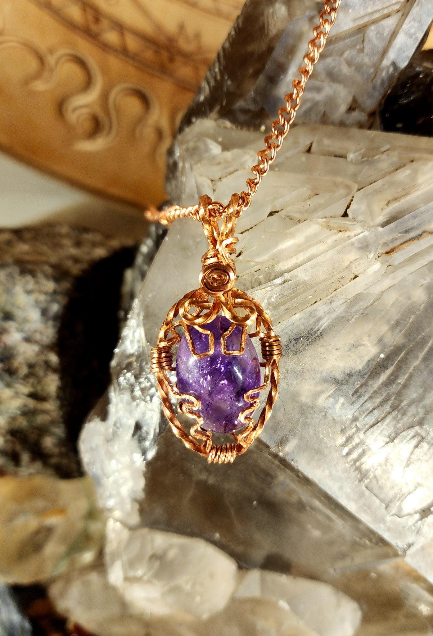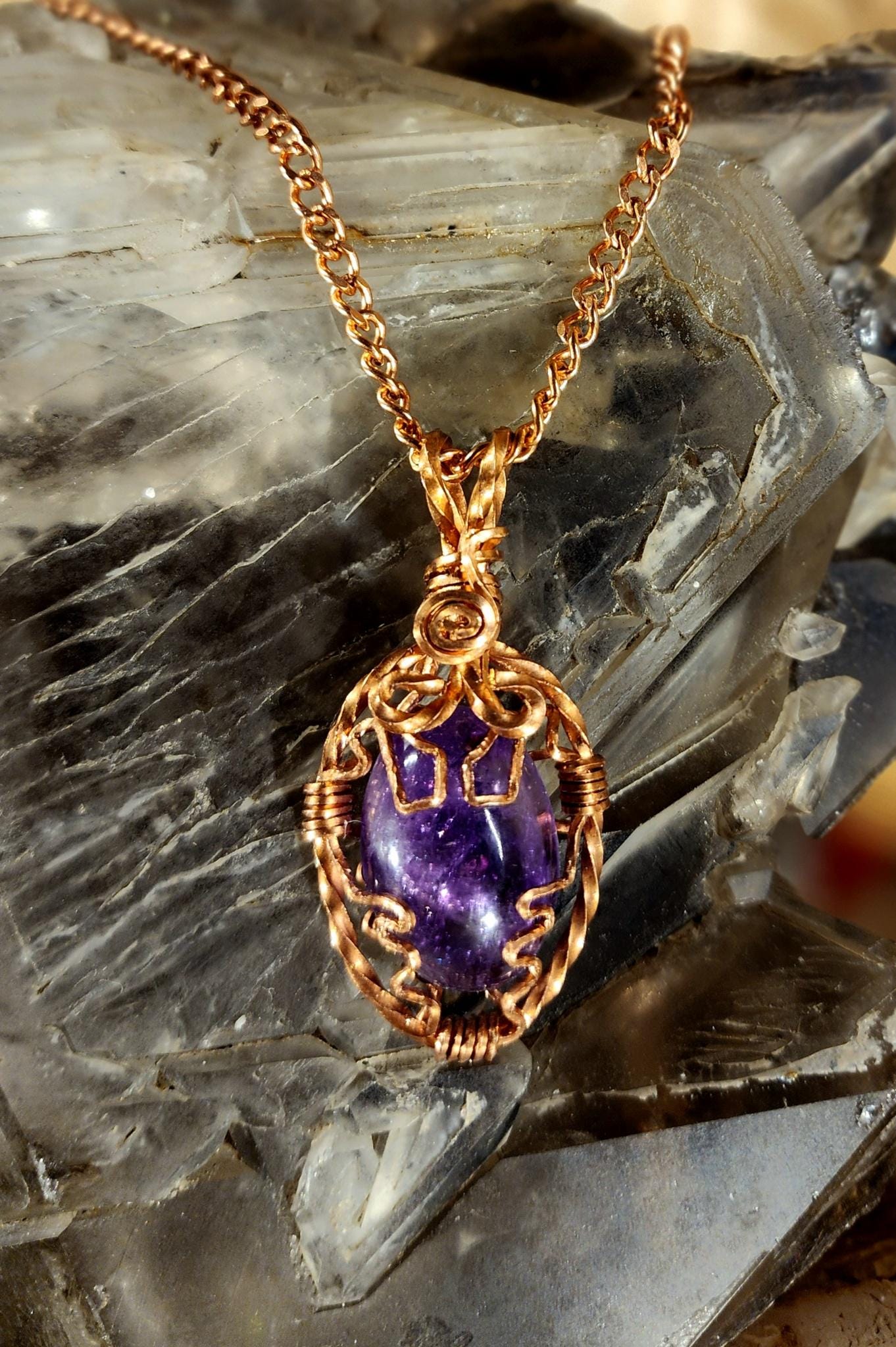 These are handmade, one-of-a-kind Intentional Healing Jewelry Pieces made by Healing Nature LLC. High Quality, USA Copper Wire Wrapped High Vibrational Crystal and Stone Jewelry Necklaces. These are specially made with Copper and Silver Square wire. Each piece is intuitively selected and enveloped in a Copper or Silver metal cage that creates a vortex around each crystal thus acting as a conduit for the frequency of each crystal or stone. These pieces work with all energetic systems.