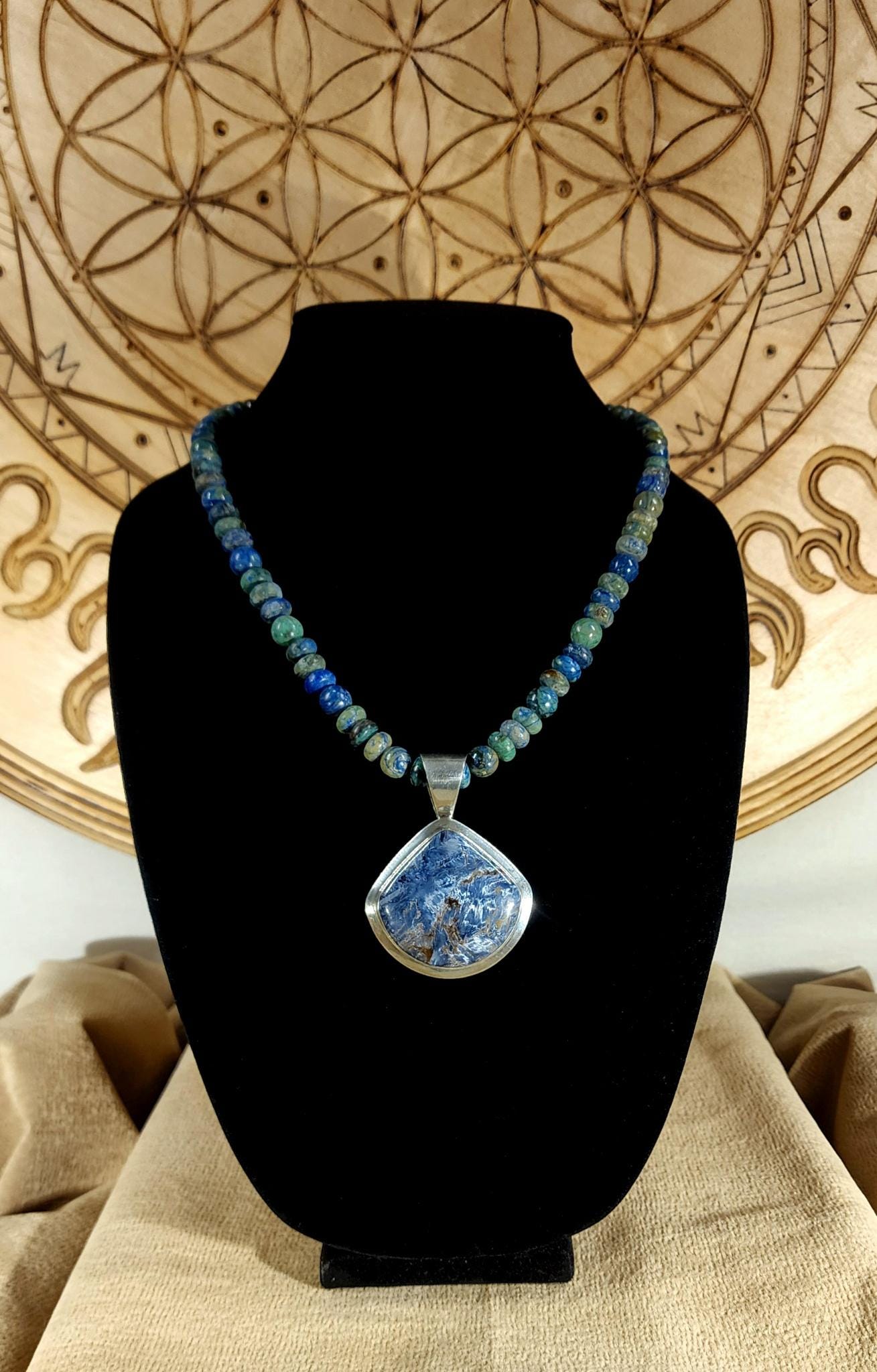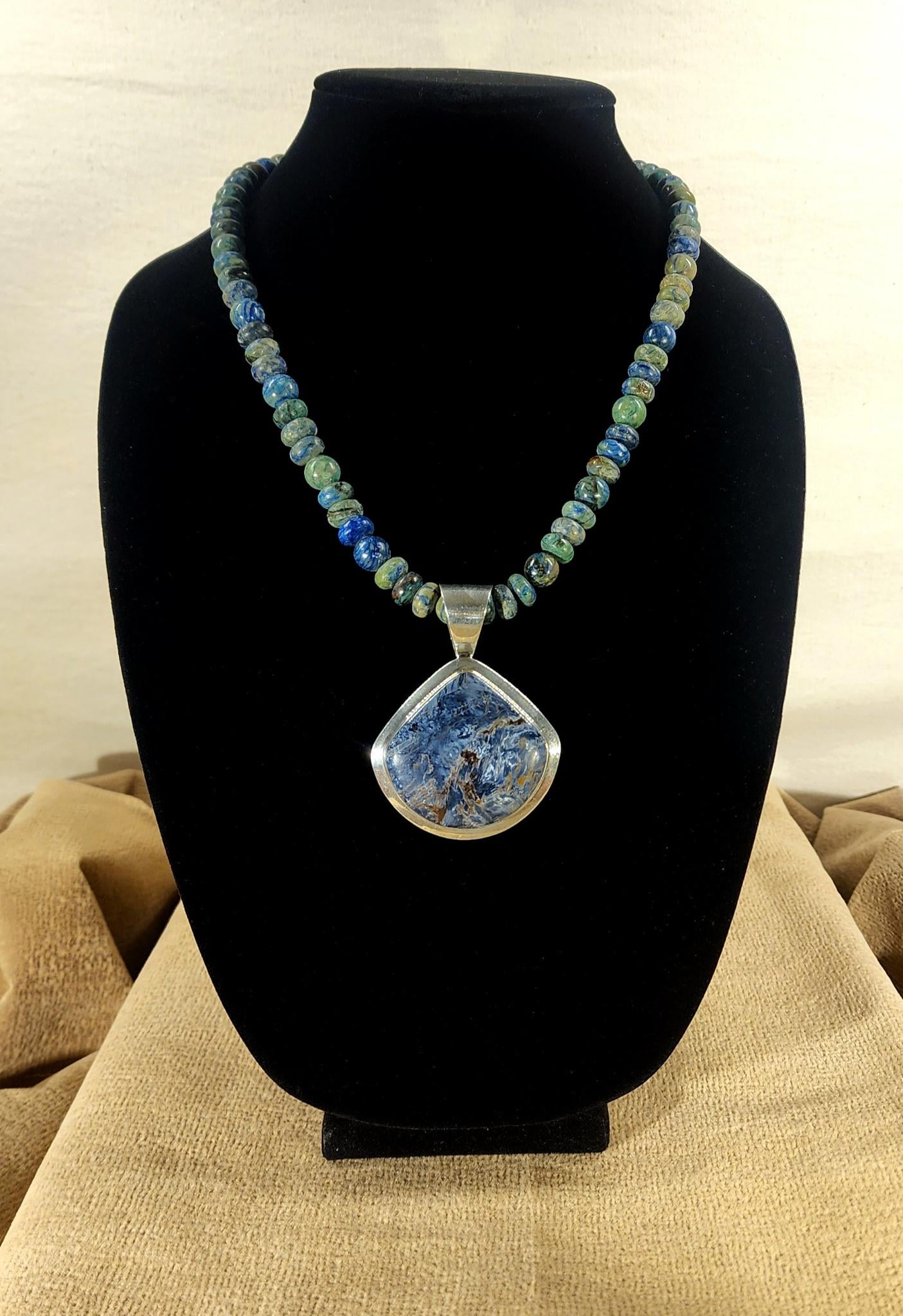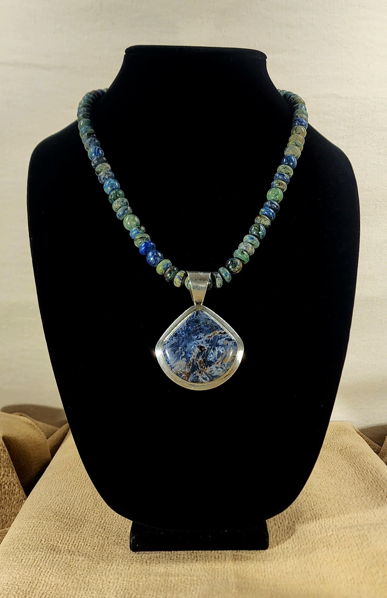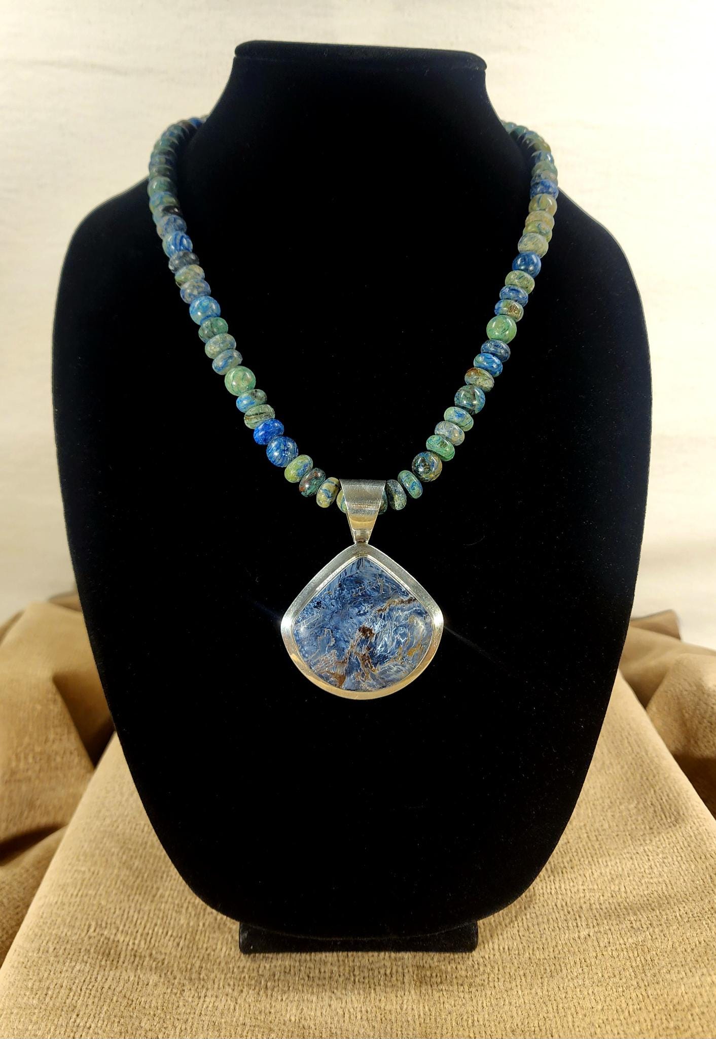 Beautiful Sterling Silver Pietersite Pendant from Namibia Africa. The necklace is made from high quality Azurite beads and has an adjustable Sterling Silver clasp.